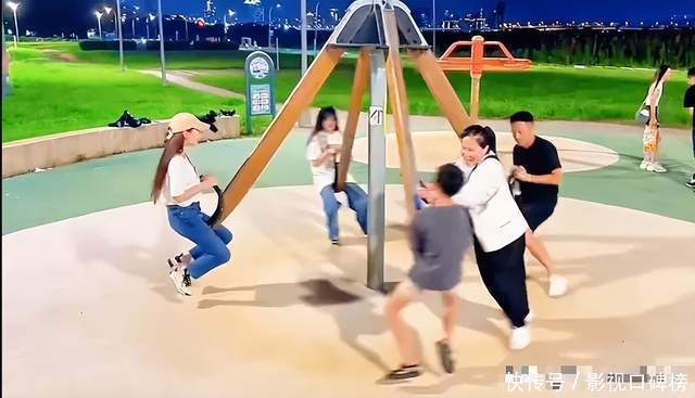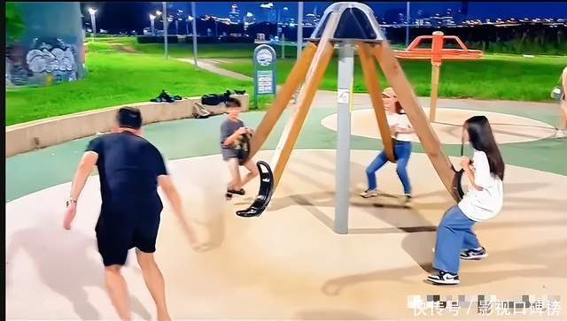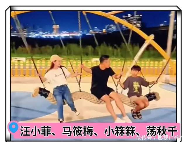 汪小菲一家四口还有小杨阿姨来到游乐场,荡秋千,坐旋转椅。